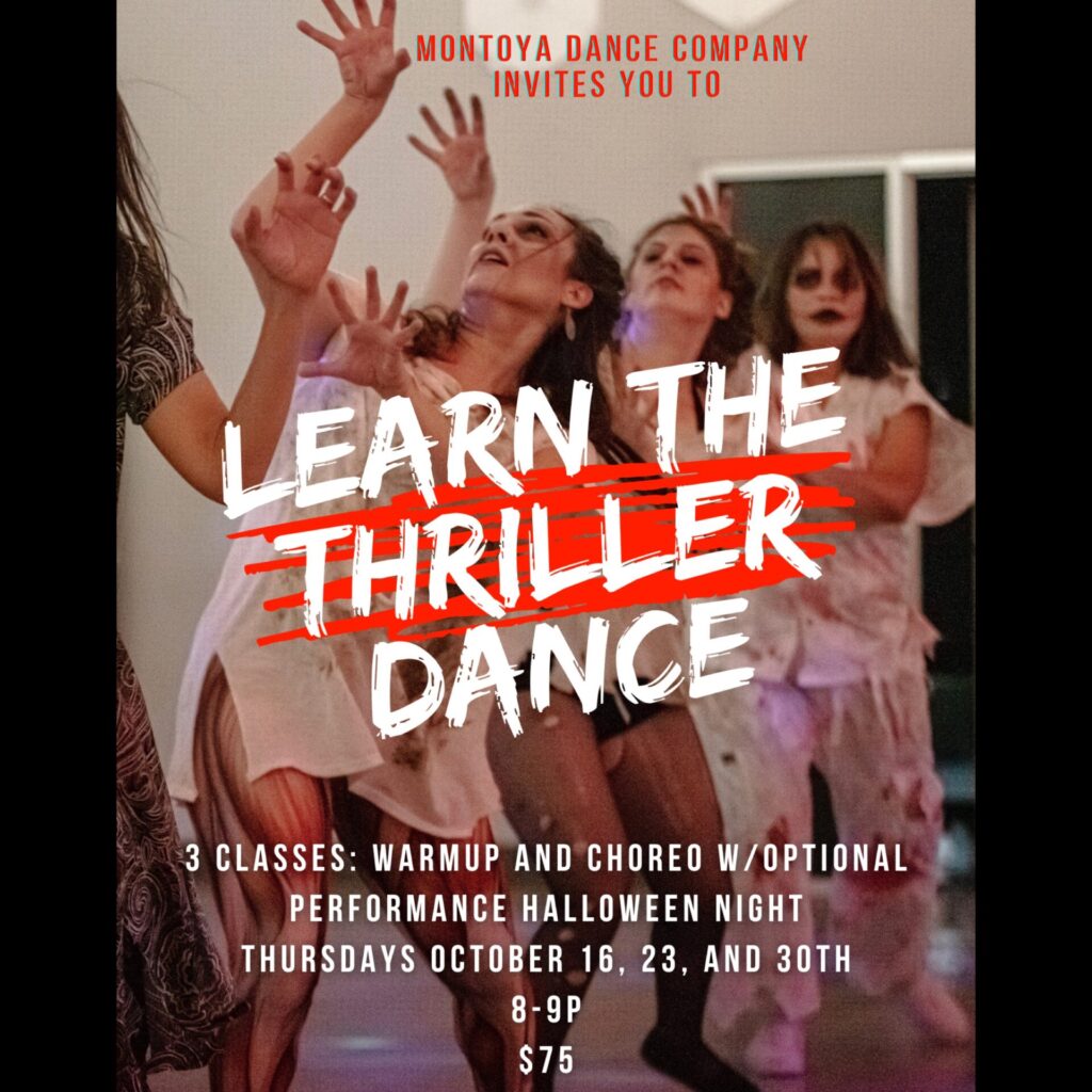 THURSDAYS OCTOBER 16, 23, and 30th 8-9p for a FUN 3-part class where you will learn the iconic choreography from THRILLER with the opportunity to perform at our Halloween Social on Halloween night!